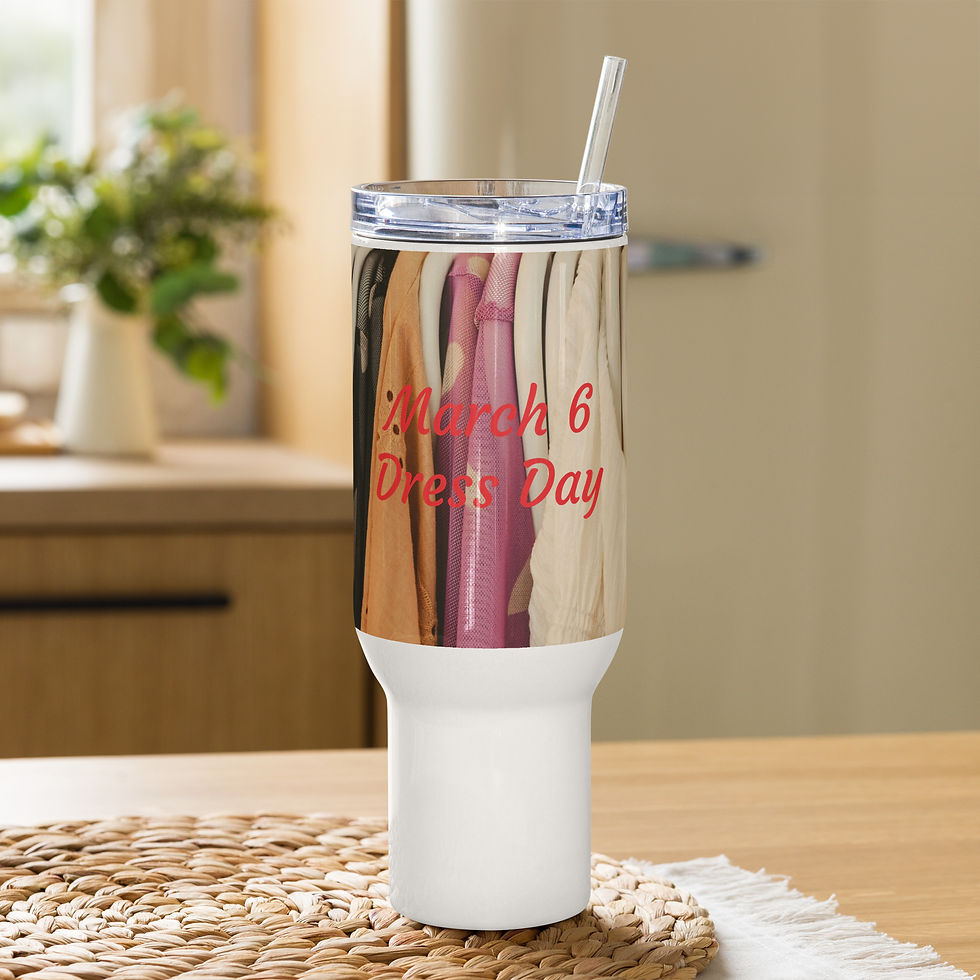 Travel mug with a handle March 6 Dress Day
